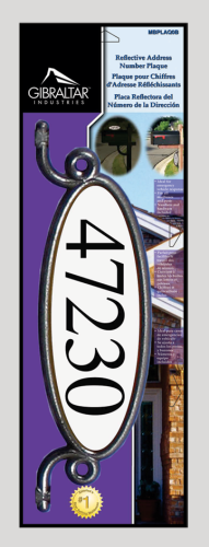 Deze ovale, tweezijdige zwarte plaat is gemaakt van kunststof. De plaat kan horizontaal of verticaal in verschillende posities worden gemonteerd. Het goed zichtbare reflecterende materiaal maakt het identificeren van adressen snel en gemakkelijk, zelfs 's nachts. De adresplaat biedt plaats aan vijf nummers wanneer deze horizontaal wordt gemonteerd en vier nummers wanneer deze verticaal wordt gemonteerd. Zelfklevende 5 cm hoge nummers en bevestigingsmateriaal worden meegeleverd, evenals een gebruiksvriendelijke handleiding voor het uitlijnen van nummers op de plaat.